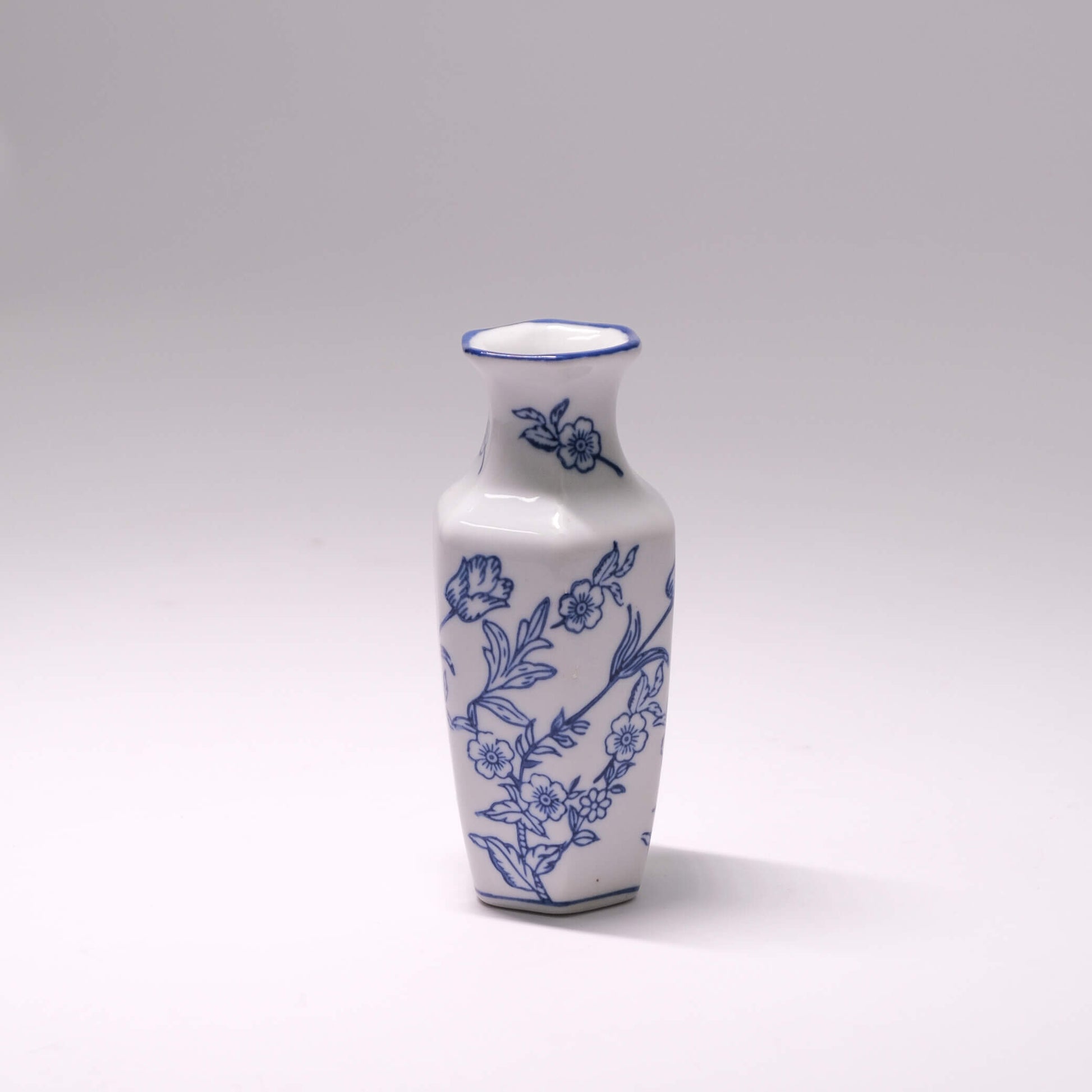 - 6-inch fine porcelain vase with traditional blue-and-white floral and stem prints