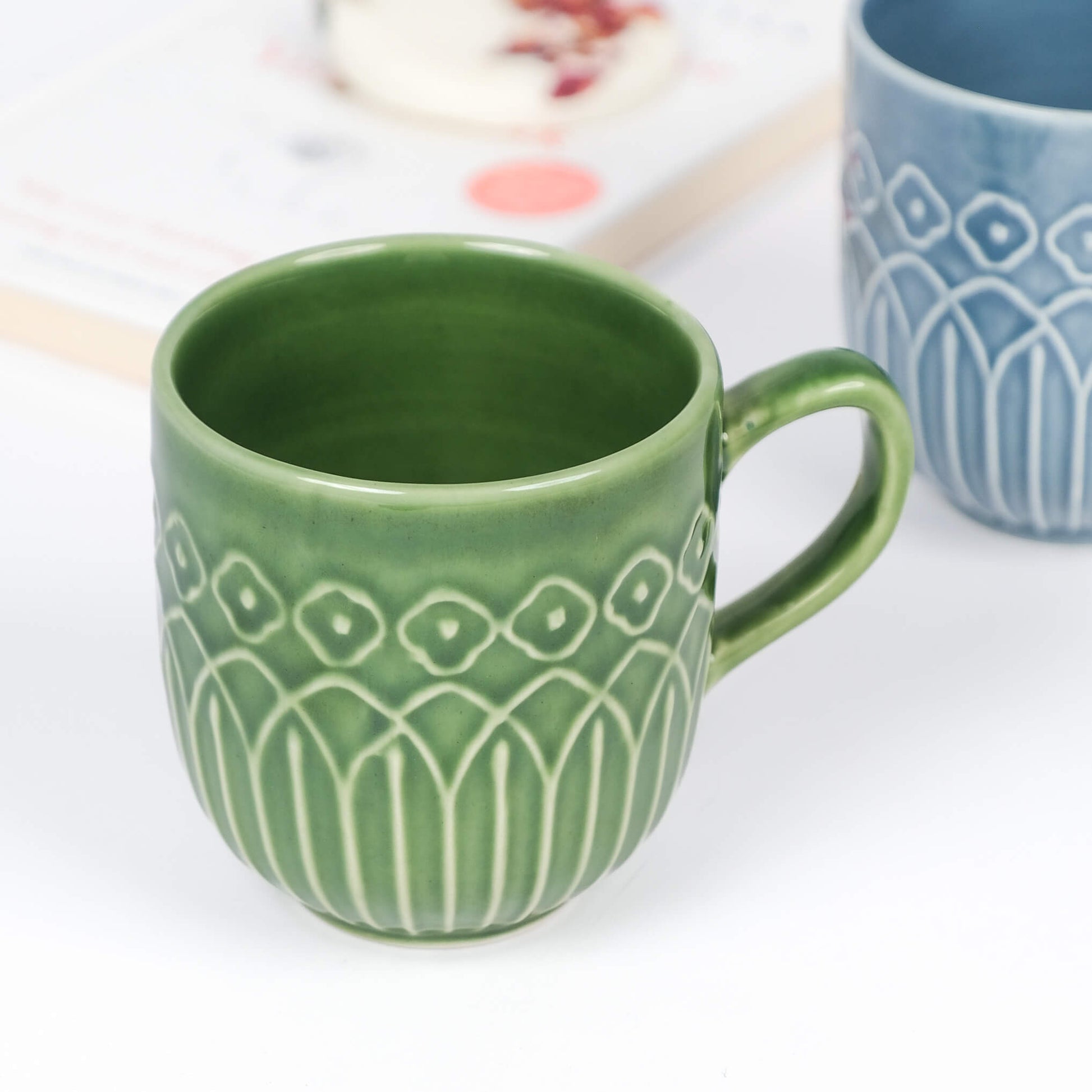 Inspired by the timeless artistry of Kolam patterns, the Embossed Kolam Serenity Mug is where tradition meets modern elegance. Available in soothing Green and Blue, this ceramic mug features embossed designs that add a textured, premium feel to your daily ritual. From your first coffee of the day to a calming cup of tea at night, this mug brings a sense of quiet sophistication to every sip. Ideal for thoughtful gifting or to elevate your own everyday tableware.