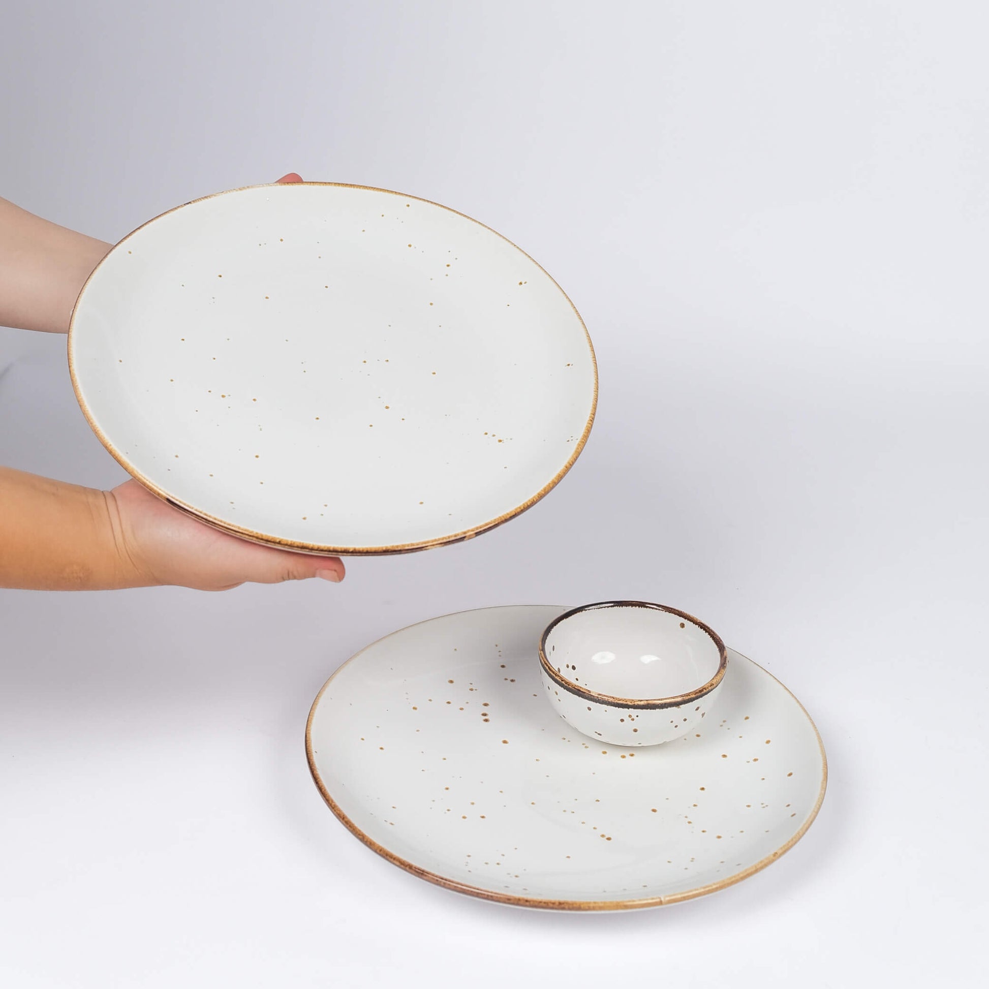 Golden flecks Dinner Set (4 piece) | 2 Plates & 2 Dal bowls