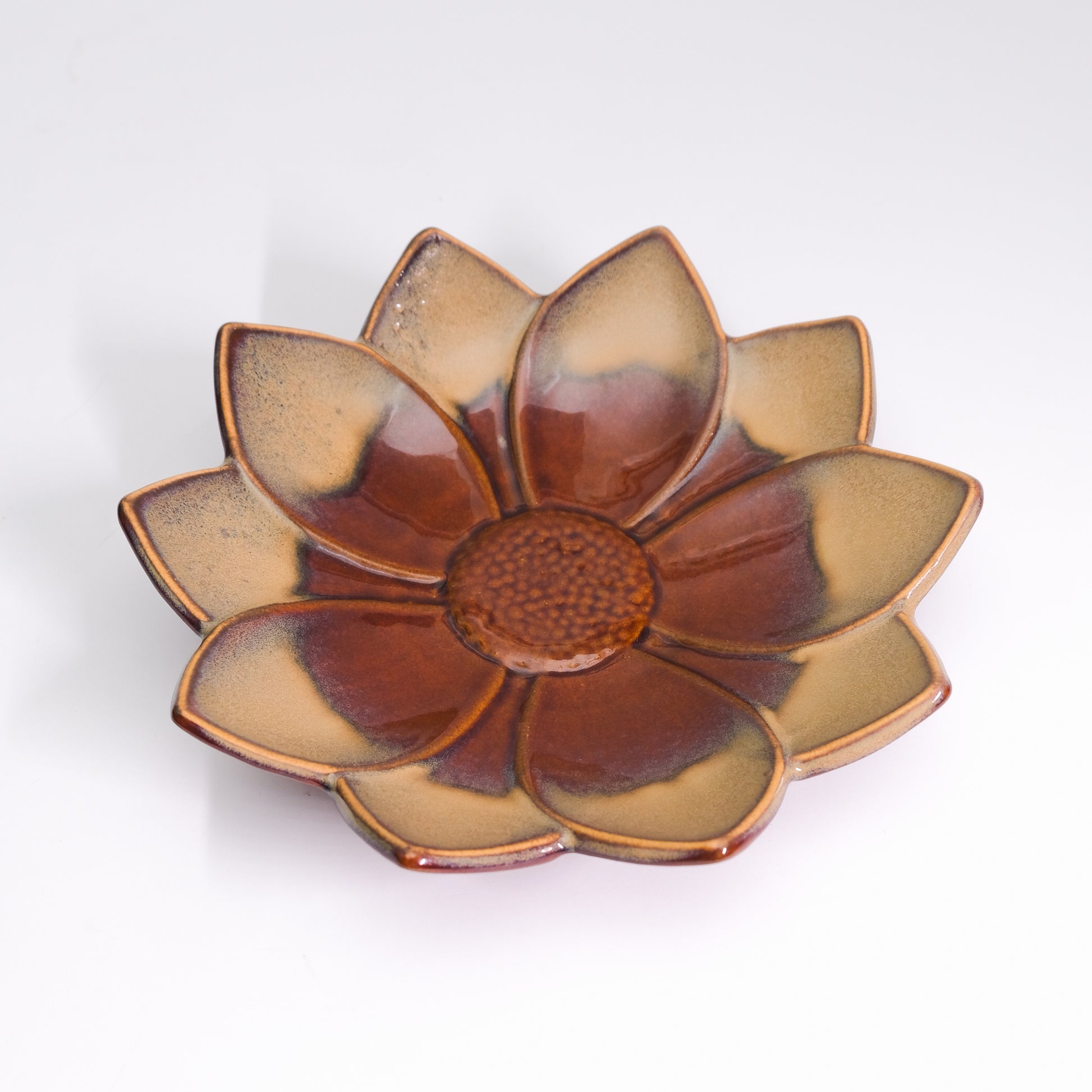 - Lotus-inspired centerpiece with layered ceramic petals