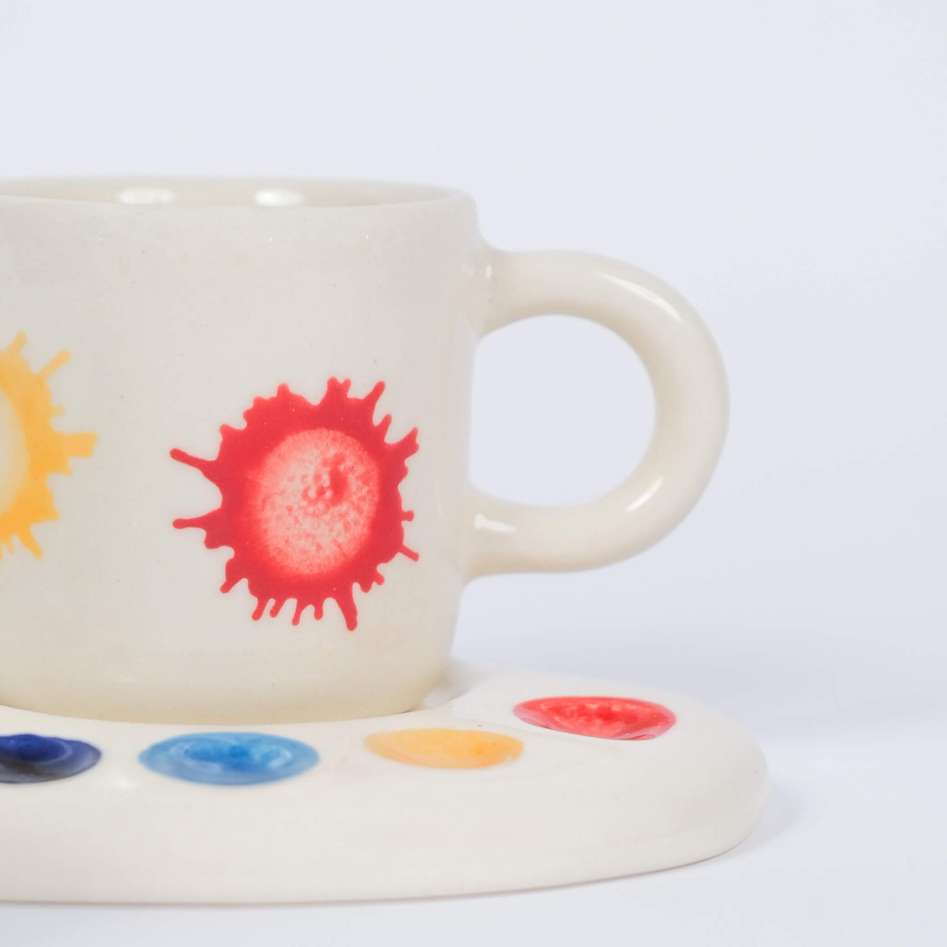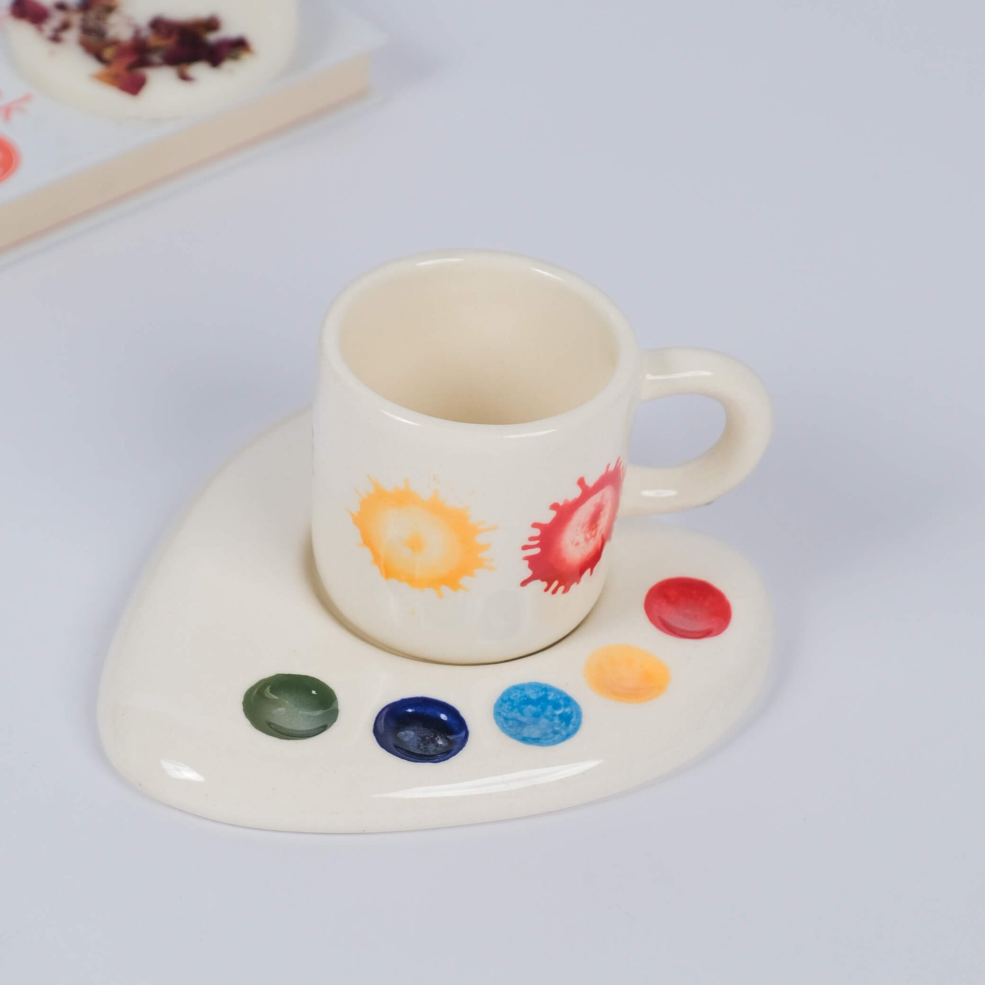 - Ceramic cup & saucer set shaped like a color palette