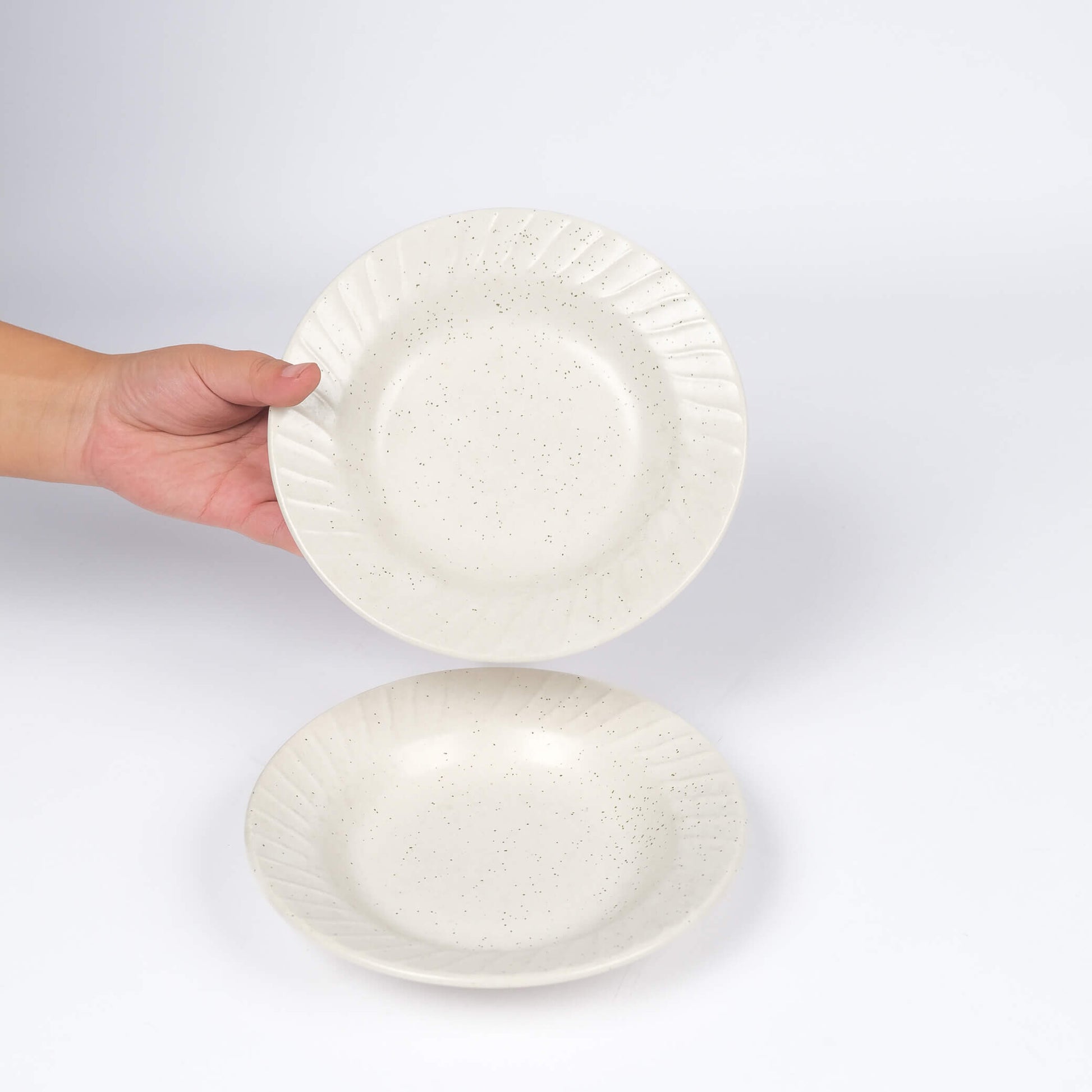 The Speckled Harmony Plates are crafted to add just the right touch of texture and refinement to your everyday table. With a soft white base, delicate speckles, and finely ribbed rims, they’re designed to be effortlessly versatile—perfect for serving appetisers, snacks, or desserts.