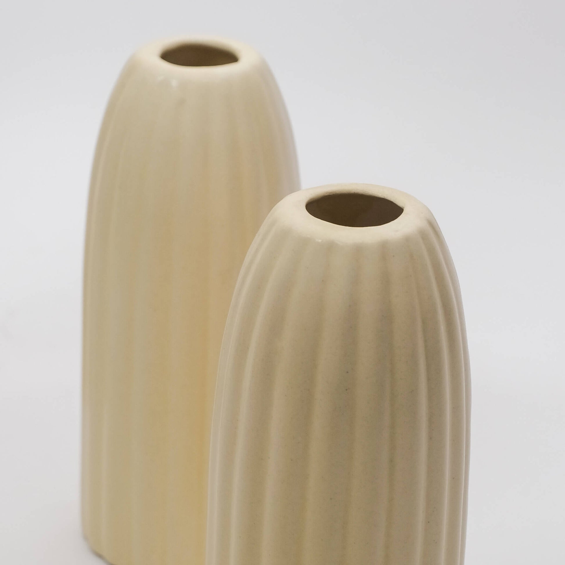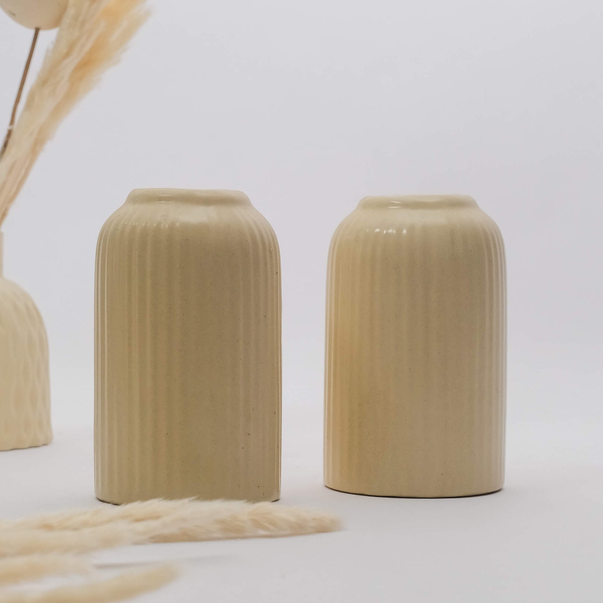 Let it hold dried stems, fresh flowers, or nothing at all. Its ribbed surface and solid stance make it a piece that adds intention and elegance without ever being loud.